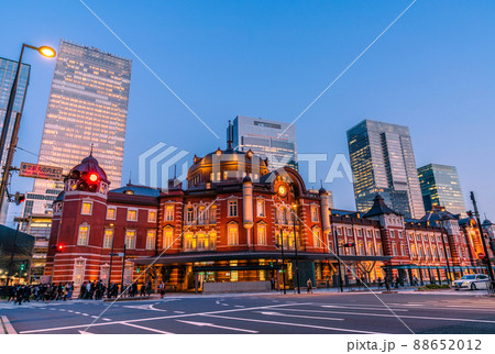 日本の東京都市景観 東京駅の赤レンガ駅舎や帰宅するビジネスマンやOLら。コロナ禍は今も…=4月12日