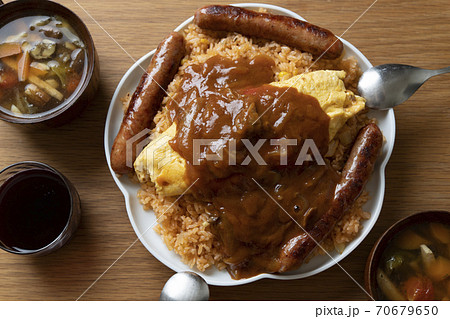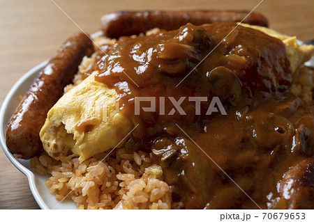 オムライスのハヤシライスソースがけの画像素材(写真・イラスト) 1ページ目