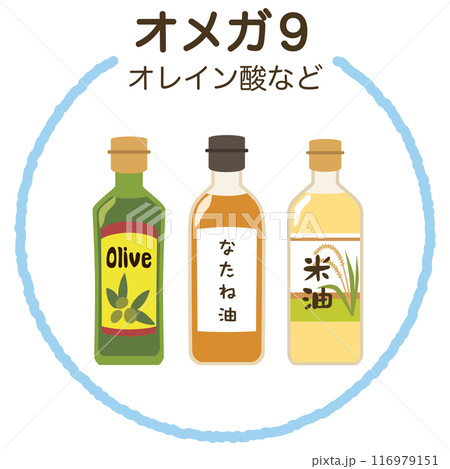 脂肪酸イメージイラスト オイル オメガ3 オメガ6 オメガ9 イメージ画像