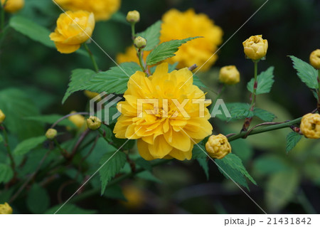 満開の一重の山吹、春の花のイメージ
