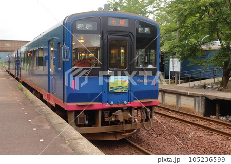 のと鉄道 観光列車「のと里山里海号」と 静態保存の郵便車(能登中島駅)