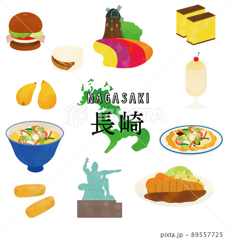 長崎 ご当地グルメ・観光名所 水彩タッチイラスト