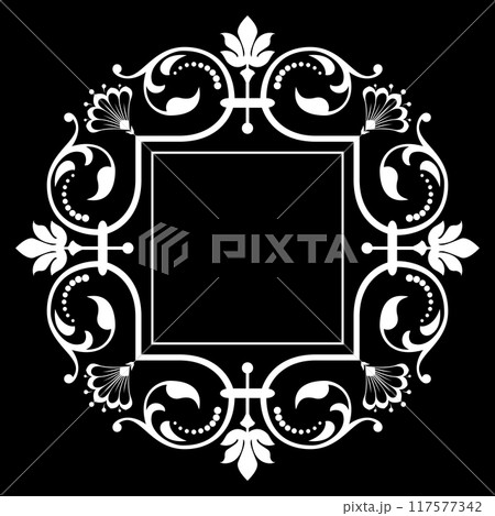 Decorative frame Elegant vector element for design in Eastern style, place for text. Floral black and white border. Lace illustration for invitations and greeting cards.