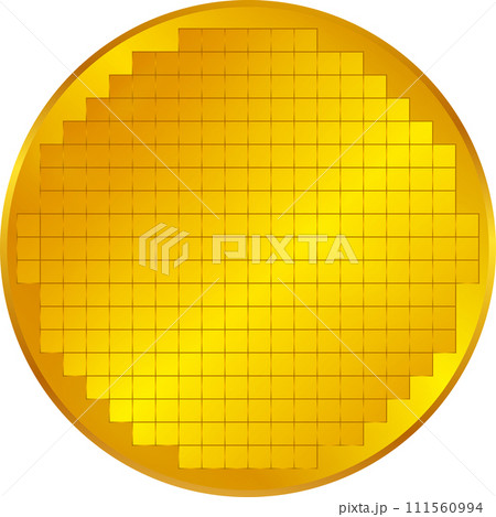 正面から見た金色のシリコンウェハーのイラスト