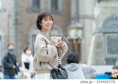 旅行をする女性 北海道観光 小樽 旅行