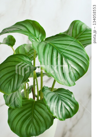 観葉植物、カラテア・オルビフォリアの鉢植え【白背景】