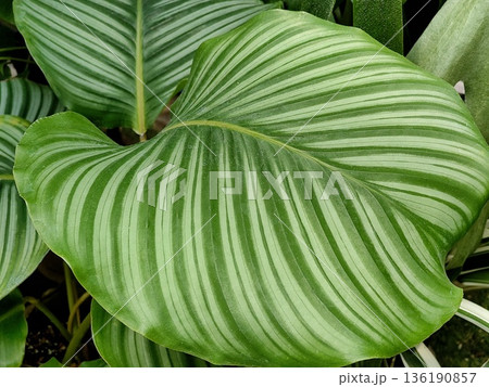 観葉植物、カラテア・オルビフォリアの葉【白背景】