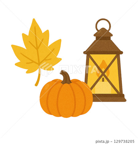 紅葉とランタンとかぼちゃの秋イラスト 透過切り抜き素材