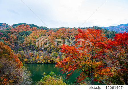雪割橋からの秋の眺望(日本福島県西白河郡西郷村)