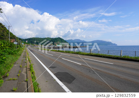 真っ直ぐ伸びるオロロンラインと日本海。北海道にて。2016年6月11日