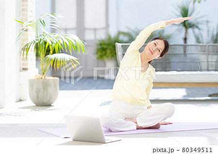 ヨガ ミドル女性 パソコン