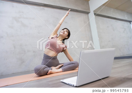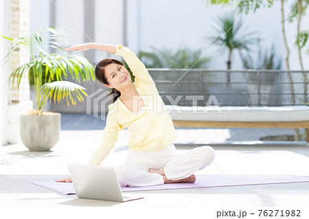 ヨガ パソコン 若い女性