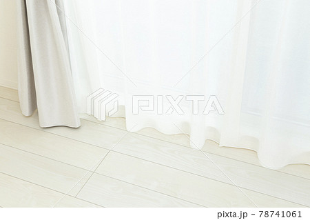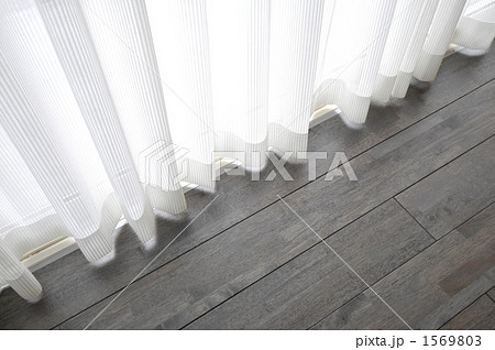 オークの床材と白いカーテンレース