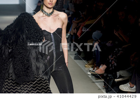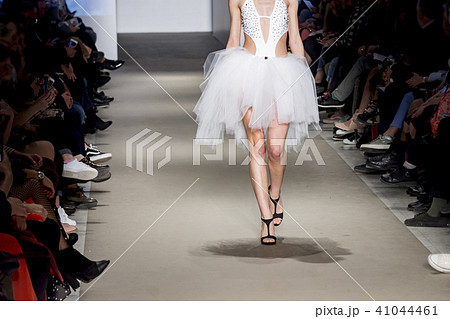 Fashion Show, Catwalk Runway Event, Fashion Week themed photograph. Models walking fashion show finale.