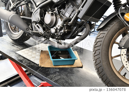 修理中のオートバイ
