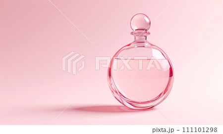 ピンク色の背景にシンプルな香水瓶「AI生成画像」