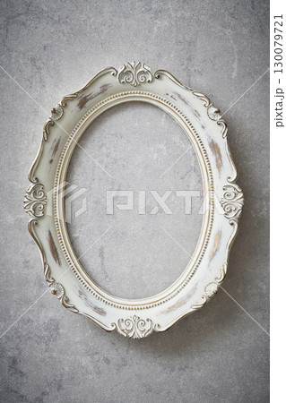 茶色い壁紙に掛けられたアンティークな楕円形の額縁