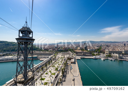 View of World trade center from overhead cable car, Barcelona, Catalonia, Spain