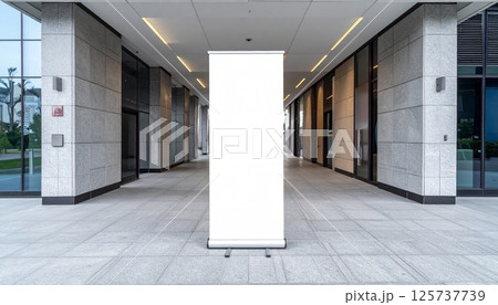 ビル入口のロールアップバナー