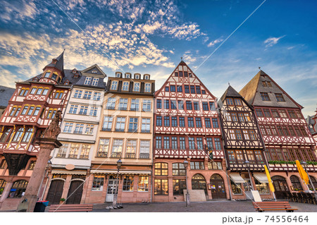 Frankfurt Germany, city skyline at Romer Town Square with half-timbered house
