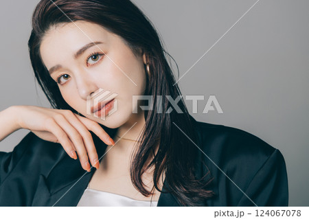 ジャケットを着てメイクアップをした美しい女性