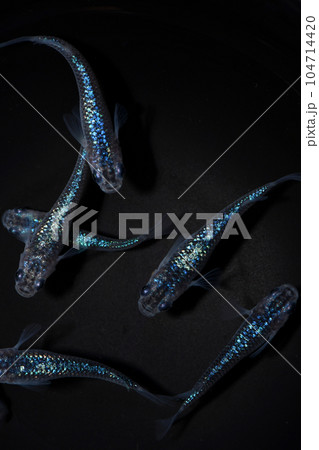 カラフルなメダカ(オーロラ黄ラメ体外光ショート)