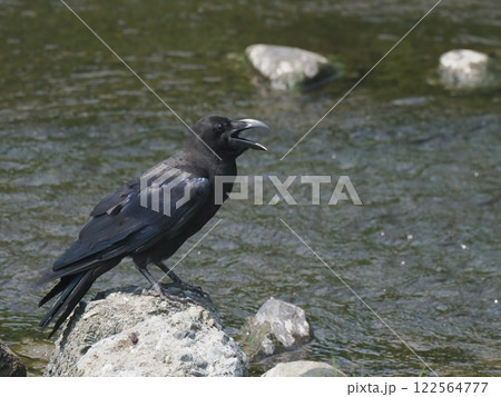 川でカアカアと鳴くハシボソガラス