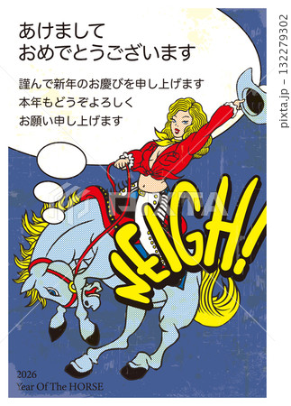 2026年賀状テンプレート「POPアート風デザイン」ハッピーニューイヤー 手書き用スペース付