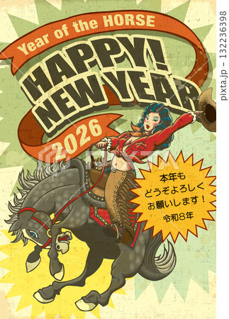 2026年賀状テンプレート「ヴィンテージ看板風デザイン」ハッピーニューイヤー 添え書き付
