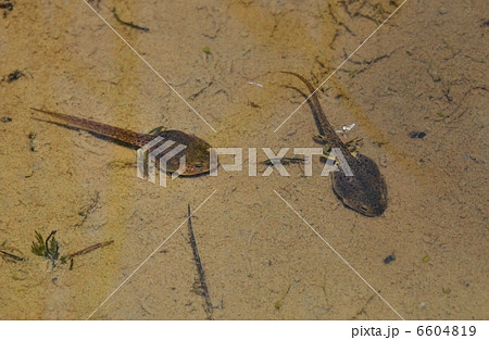 水の中のオタマジャクシ カエルの幼生 孵化したオタマジャクシ