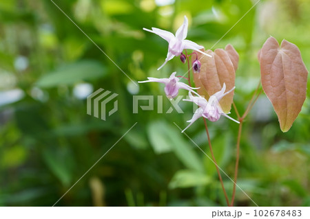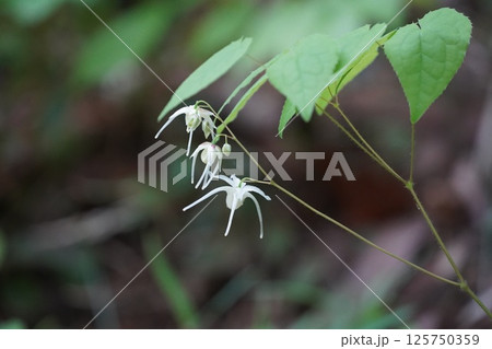 自然 植物 イカリソウ、山地や丘陵の林縁などに自生。山菜や生薬にもなるそうです