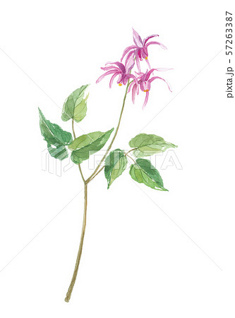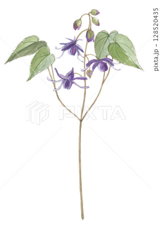 水彩で描いた碇草 イカリソウ