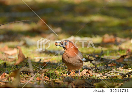 木の実をくわえるカケス(懸巣)