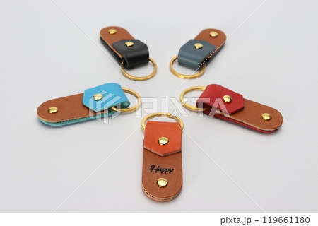 カラフルなハンドメイドのレザーキーホルダー