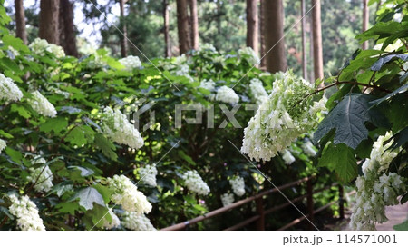 白い花のカシワバアジサイ