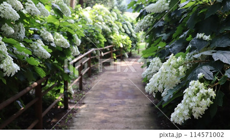 ロマンチック茨城(山の斜面の散歩道に見事に咲き誇る柏葉紫陽花のトンネル。)涸沼自然公園あじさい祭り