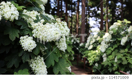岩手県一関市舞川原沢 紫陽花の名所みちのくあじさい園 散策路沿いのカシワバアジサイの壁