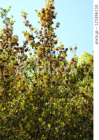 自然 植物 シラカシ、五月半ば雄花はっ目立たなくなりましたが枝先に雌花の痕跡?がちらほら見えます