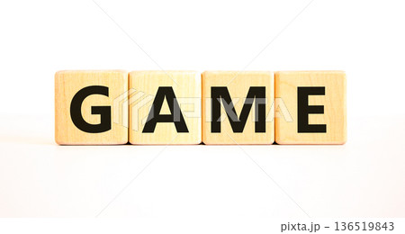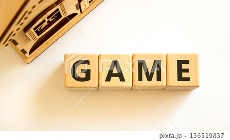 Game symbol. Concept word Game on beautiful wooden blocks. Beautiful white table white background. Business, lifestyle and game concept. Copy space.