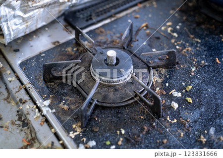 食品カスで汚れたレトロなガスコンロ