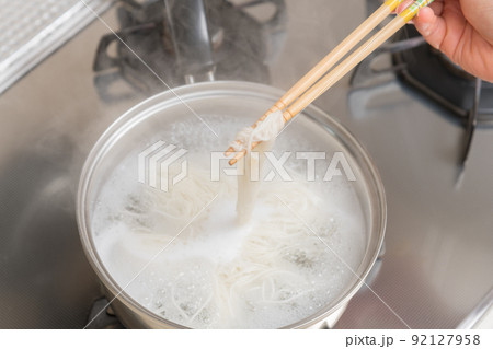 【菜箸を使って素麺を茹でる】