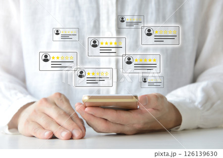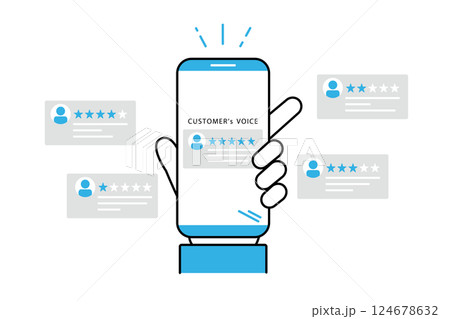スマートフォン上で述べられた顧客の評価を表したイメージイラスト