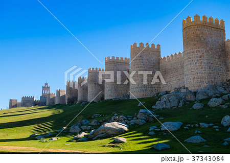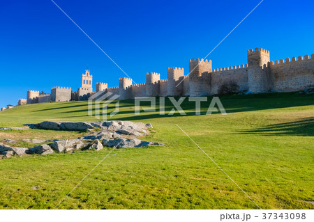 城壁に囲まれた街アビラの遠望(スペイン)