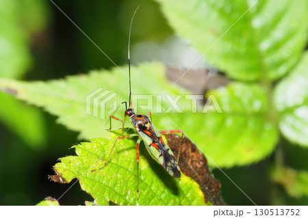 生き物 昆虫 ケブカキベリナガカスミカメ、五月の雑木林。春から初夏に現れるスマートなカスミカメムシ