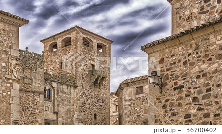 Renaissance facade of the Episcopal Palace in Plaza Santa Maria in Caceres,Spain
