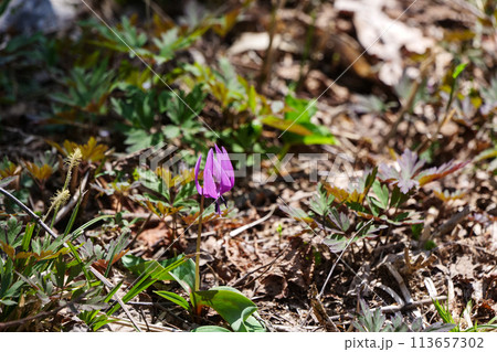 里山に咲くスプリング・エフェメラルの1種 カタクリの花