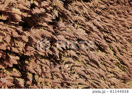 紅葉したイヌカタヒバかカタヒバと思われるシダ植物の群生
