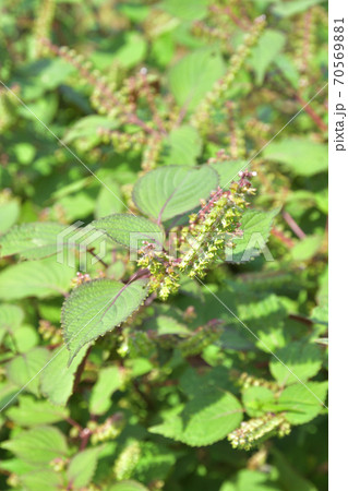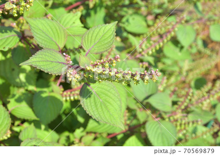 初夏の頃生魚の中毒解毒や着色 風味 薬能などに食用ハーブとして シソ3