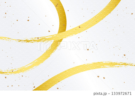 明るい金色の筆跡が交差する和風抽象背景・青海波入り|金色 筆跡 青海波
