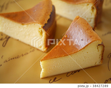 シンプルベイクドチーズケーキ カットピース (横位置ハイアングル)